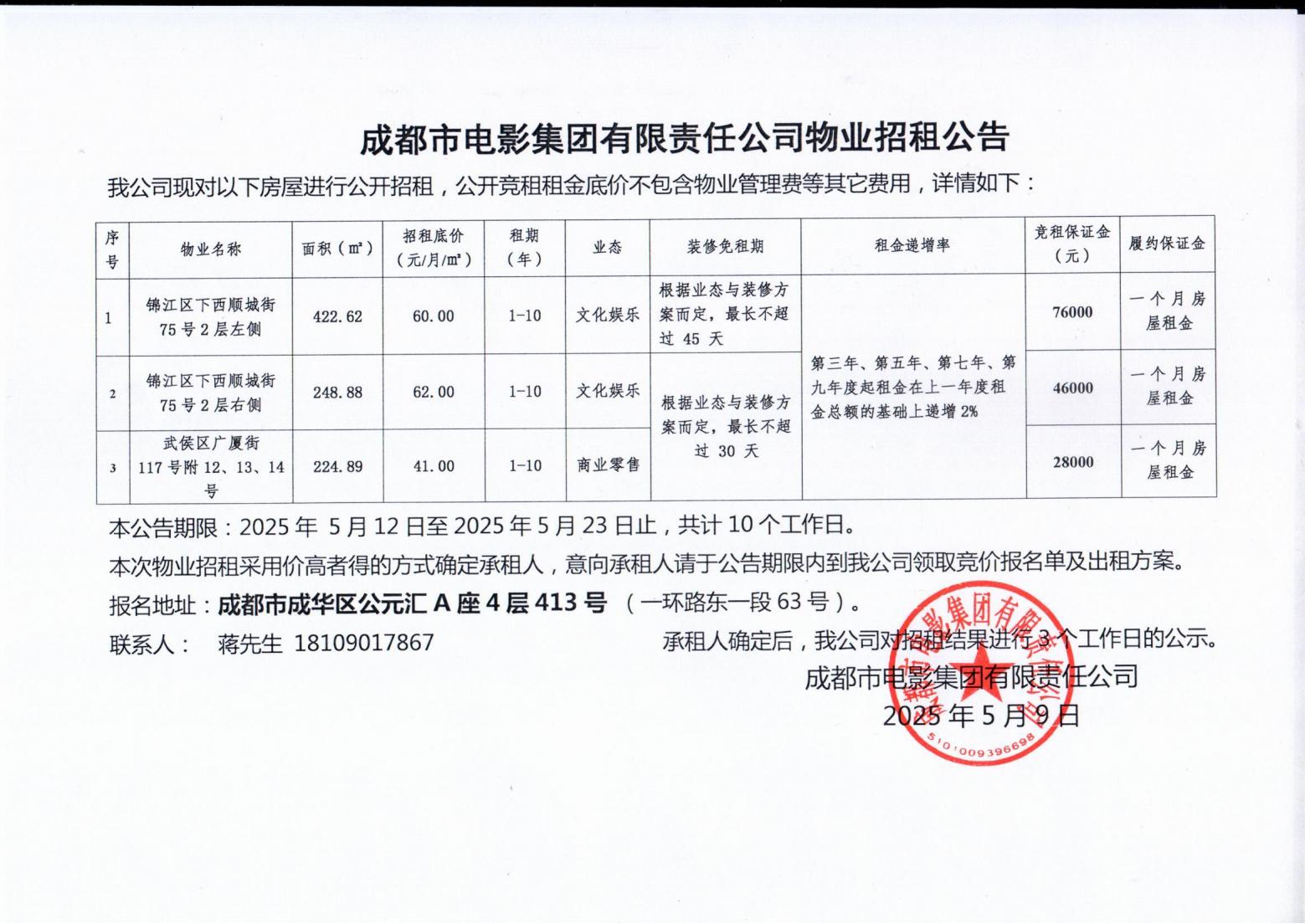 成都市電影集團有限責(zé)任公司物業(yè)招租公告